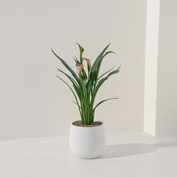 紅唇海芋 (Calla Lily,學名:Zantedeschia spp.) 之所以與一般白色海芋不同,是因為它經過品種交配,擁有紫色、黃色、紅色等多種鮮豔的色彩,花形優雅迷人。在國外,紅唇海芋常被用作新娘捧花,象徵著美麗與勇氣。它適合全日照到半日照的環境,無論露天或陽台皆可種植,若能提供潮濕涼爽的環境,海芋將會長得更為漂亮,為您的空間增添獨特的藝術氣息和視覺焦點。花色隨機出貨,如果有喜歡的花色,請留言給我們。