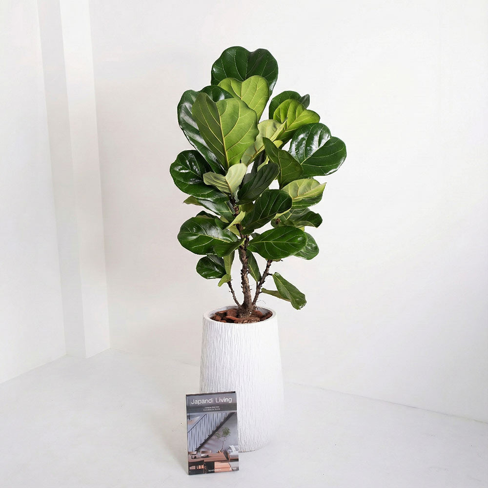 琴葉榕 (Fiddle-leaf Fig.),這款源自熱帶雨林的明星植物,以其碩大如提琴般的葉片和獨特的自然樹型,成為當今室內設計中最受歡迎的綠色焦點。它喜愛明亮且溫暖的環境,放在室內的話,建議客廳或有採光的空間是最棒的。7寸盆的琴葉榕非常適合放在角落,因為它生長速度較慢且本身樹型優雅,不太需要頻繁修剪或維護,是一款極易照顧的室內植物。