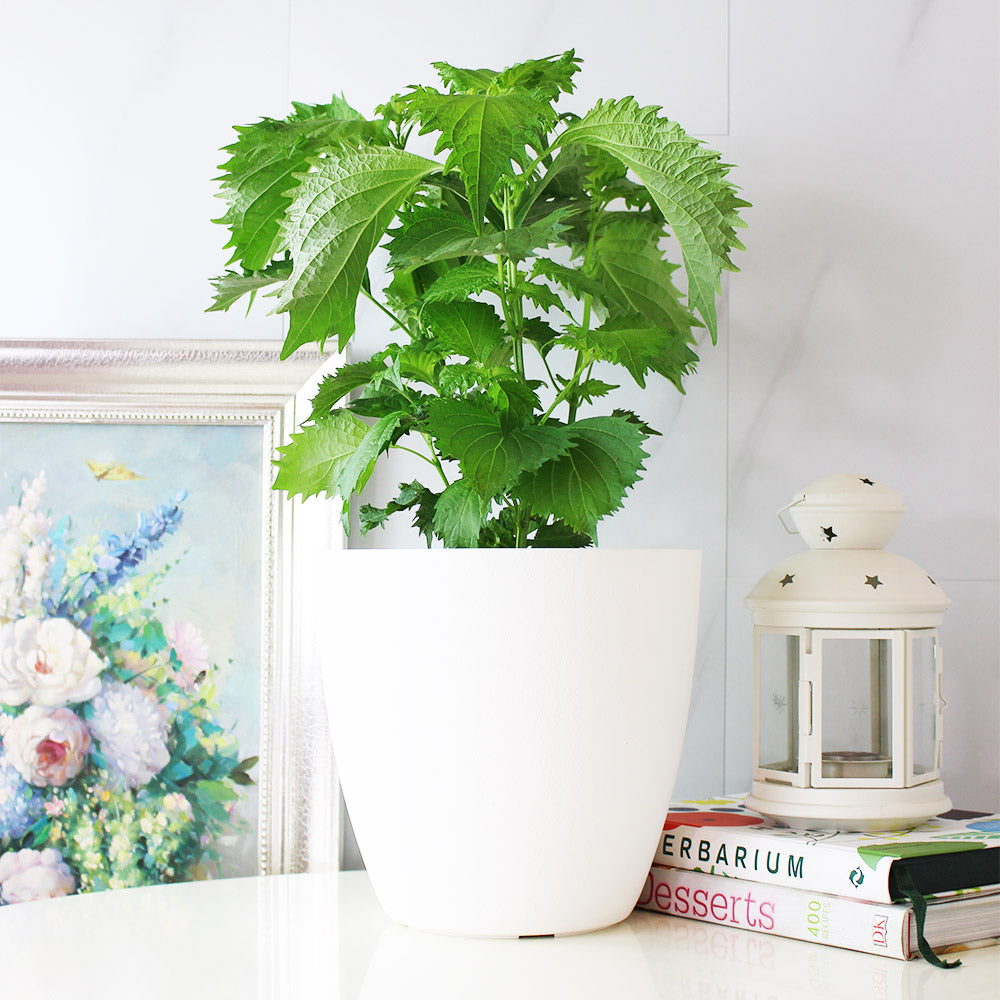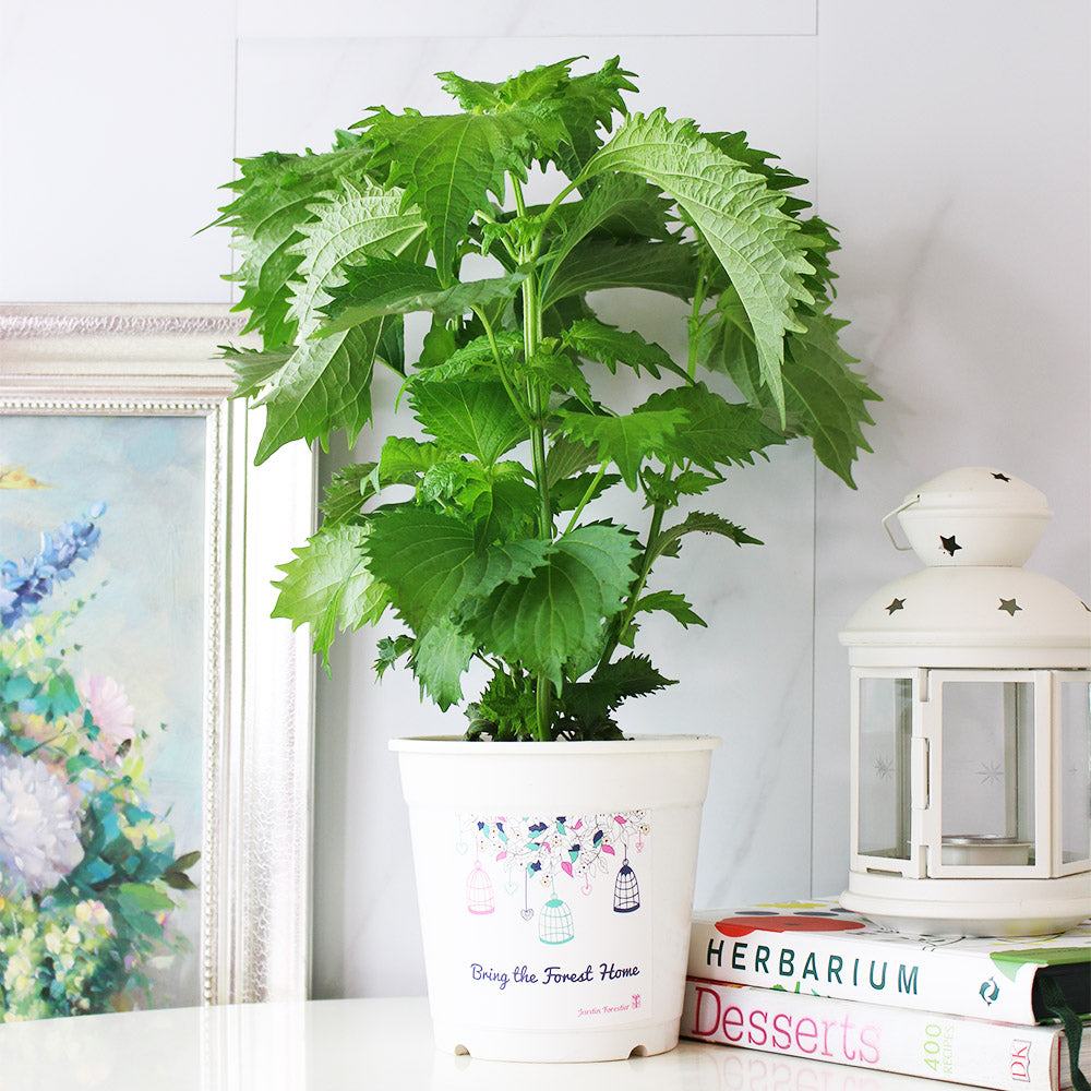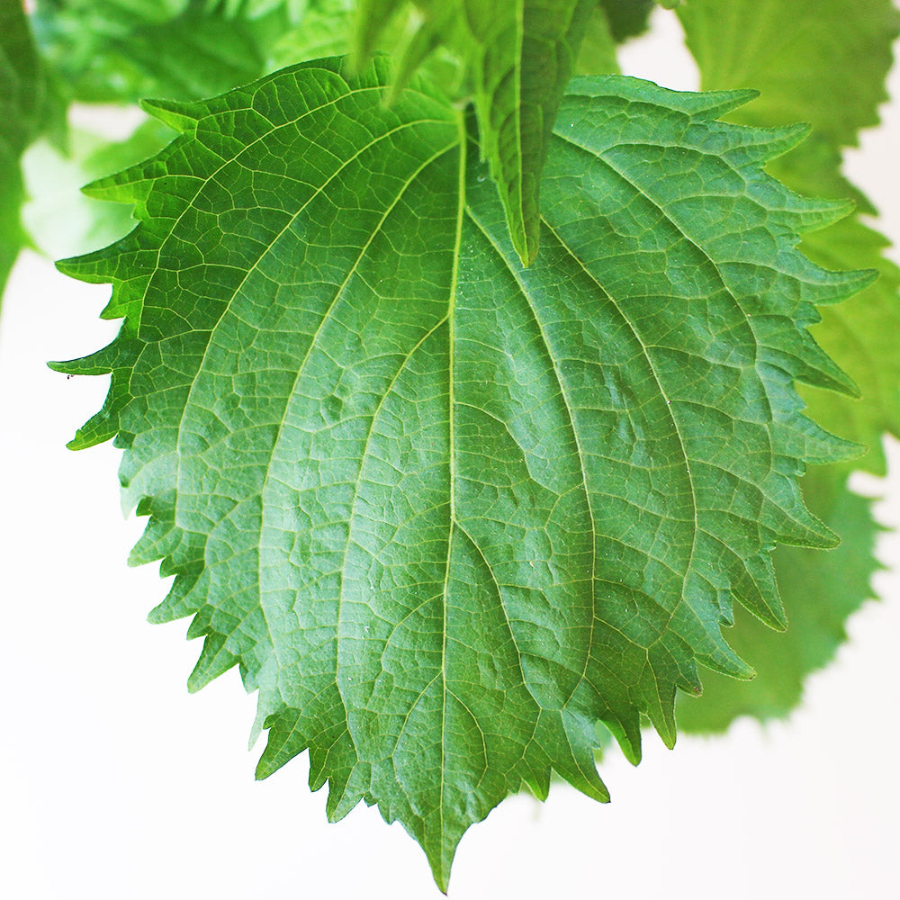 綠紫蘇 (Green Perilla) 最常見於生魚片盤飾,在日本的拉麵、火鍋中也常看到它的身影。紫蘇類植物都非常好照顧,只要有充足陽光和大量水分就能生長良好。