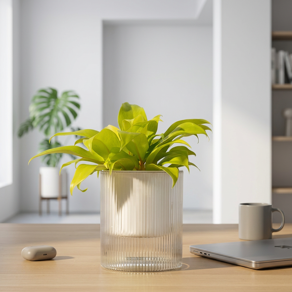 這盆陽光鋤葉蔓綠絨擁有令人一眼心動的亮麗檸檬黃色澤,像是在室內捕捉到了一抹永不消失的暖陽。心形的葉片柔軟而富有光澤,垂墜而下時展現出靈動的線條美,能瞬間點亮空間的明亮度。它非常適合擺放在書桌、層架或掛盆中,營造出一種清新、充滿活力的自然氛圍。養護它不僅能柔化室內線條,更能為疲憊的視覺帶來溫柔的撫慰,是忙碌生活中最療癒的綠色陪伴。