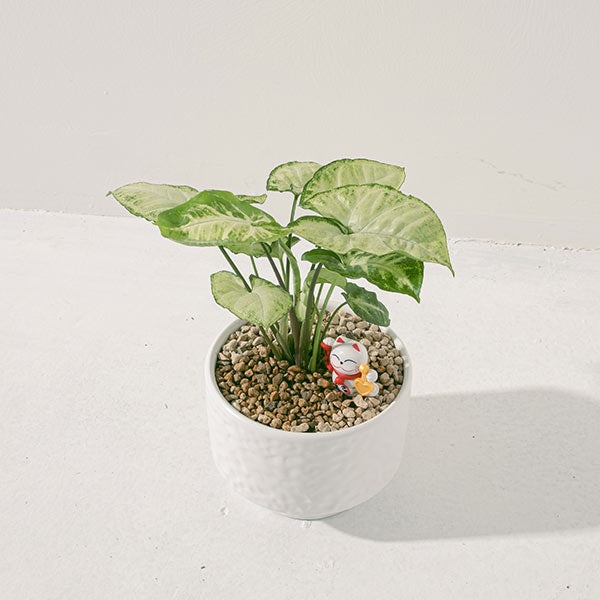 綠精靈合果芋不僅外觀迷人,更具備強韌的適應力,無需過多照護,便能自然形成美麗的球狀,是適合「懶人」種植的理想選擇。