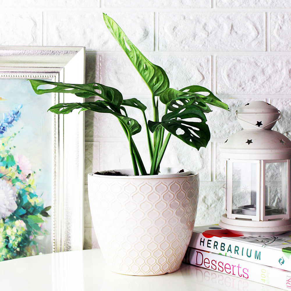 窗孔龜背芋 (Monstera obliqua miq) 是龜背芋家族的珍稀成員,其葉片自幼便帶有獨特的窗孔,且窗孔邊緣緊鄰葉緣,顯得格外迷你可愛,彷彿為綠葉開了一扇扇通透的小窗。它非常適合擺放在客廳或書桌上,為您的居家空間帶來一份獨特的熱帶雨林風情與設計感。這份源自雨林的自然之美,將為您的生活注入清新與活力。