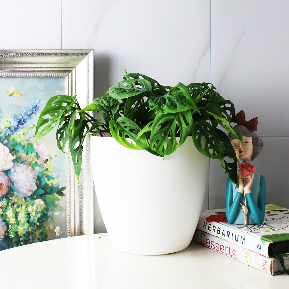 風水寓意:窗孔龜背芋以其獨特的開孔葉片、旺盛的生命力和熱帶雨林氣息,在風水上象徵著招財納福、智慧開啟與化煞添貴。其葉片上的窗孔被視為**「開窗見景、通達智慧」,寓意著思緒開闊,有利於事業發展與學業精進**。圓潤的葉形與繁茂的生長,能聚攏財氣,帶來福運。它屬於「木」元素,代表生長、活力與生機,能為居家帶來清新正向的能量。