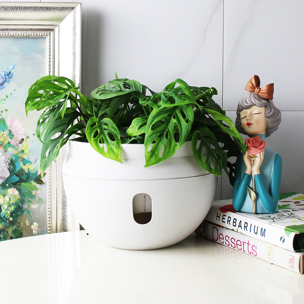 若配備自動澆水花盆,底部透明儲水槽讓您水量一目瞭然,再也不用擔心缺水。您只需直接從土表補充水分即可。
