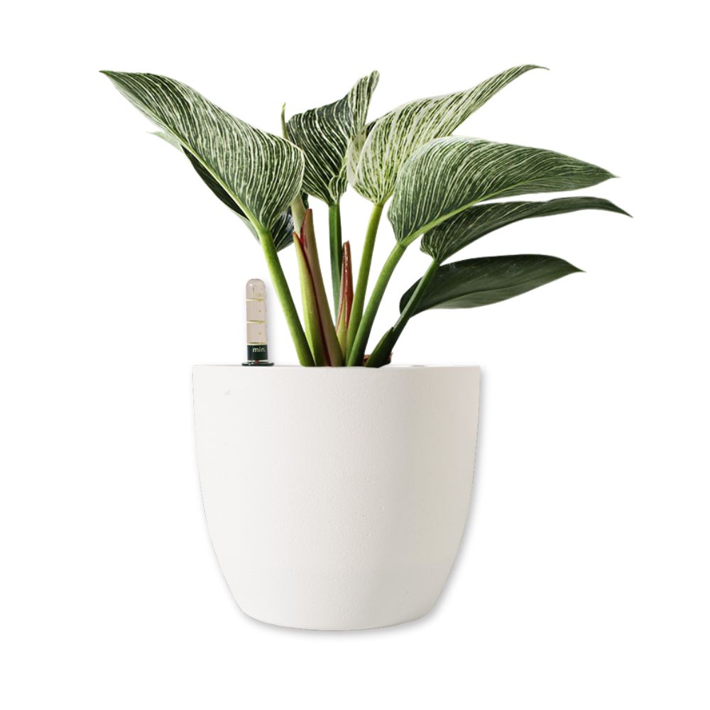 鉑金蔓綠絨 (學名:Philodendron Birkin) 是蔓綠絨家族中近年來極受矚目的變異品種,以其深綠色葉片上,鑲嵌著清晰、如同手繪般的白色或奶油色條紋而聞名。每一片新葉展開時,葉面上的**「鉑金」紋路都獨一無二,為室內空間帶來一種低調奢華、時尚優雅**的藝術氛圍。它不僅擁有蔓綠絨家族強韌的生命力,更是提升居家品味、展現主人不凡格調的絕佳觀葉植物。