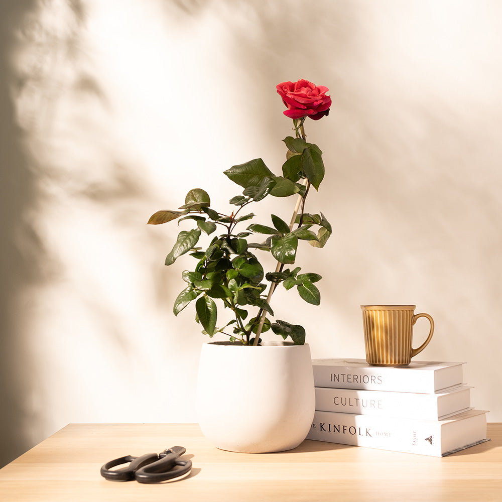 這是一株自帶「初戀香氣」的紅玫瑰。不僅擁有令人驚豔的鮮紅色花瓣,更獨特的是它散發著濃郁的荔枝果香,甜而不膩,彷彿初戀般的悸動。適合擺放在陽光充足的陽台或庭院,每一次微風吹過,都能為家中帶來天然的高級香氛。