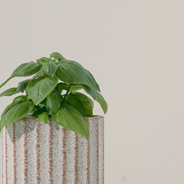 水分💧: 請在盆栽變輕時才澆水。甜蘿勒不喜歡土壤長期潮濕。若葉片開始枯黃,請檢查土壤是否過濕,並減少澆水頻率而非澆水水量。