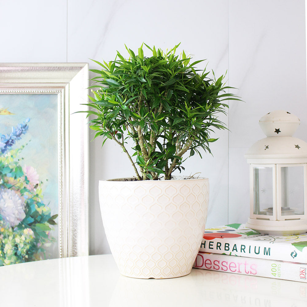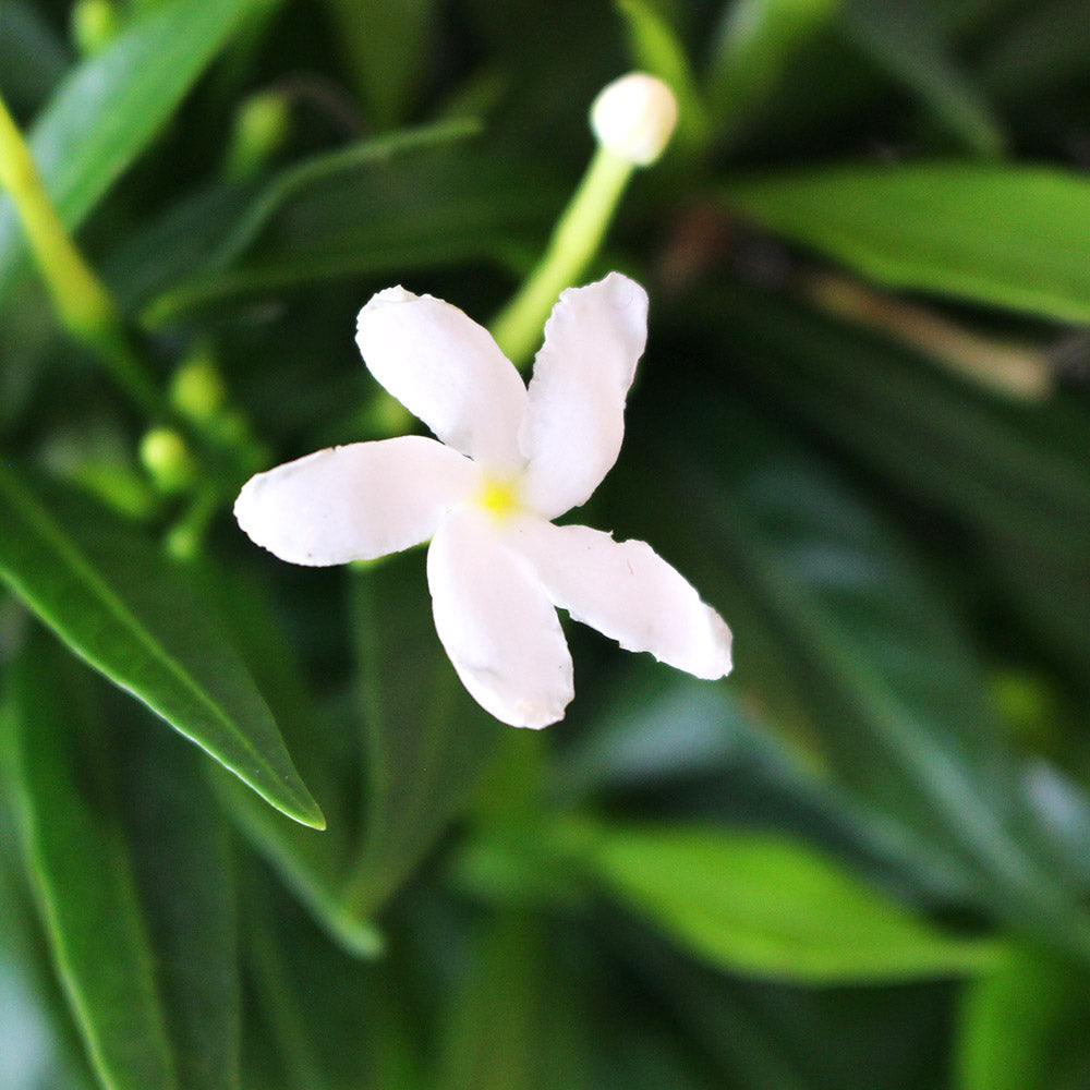珍珠馬茶花 (Pinwheel Jasmine),這款源自印度、適合溫暖地區栽種的優雅植物,在台灣或東南亞等地都能茁壯成長。它以其潔白的花朵和清新香氣而聞名,尤其在春天更是花開滿樹,四季皆能見其蹤影,為您的空間帶來一份持久的芬芳與純淨之美。